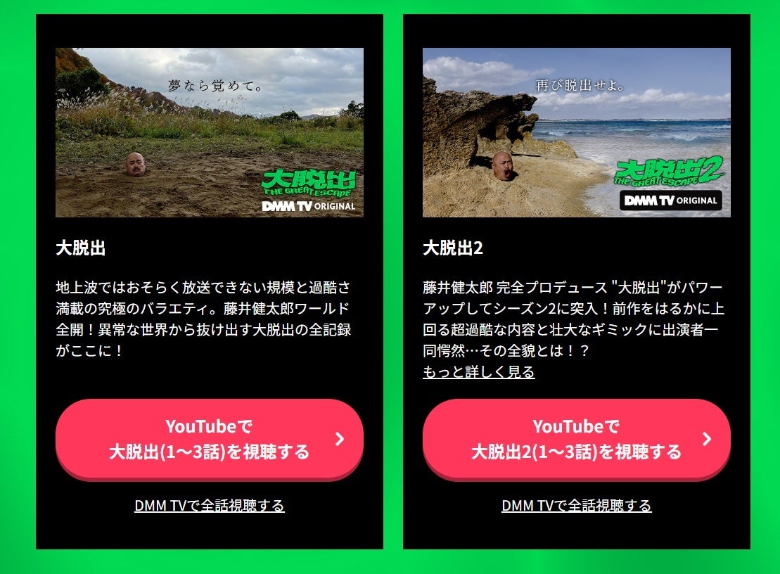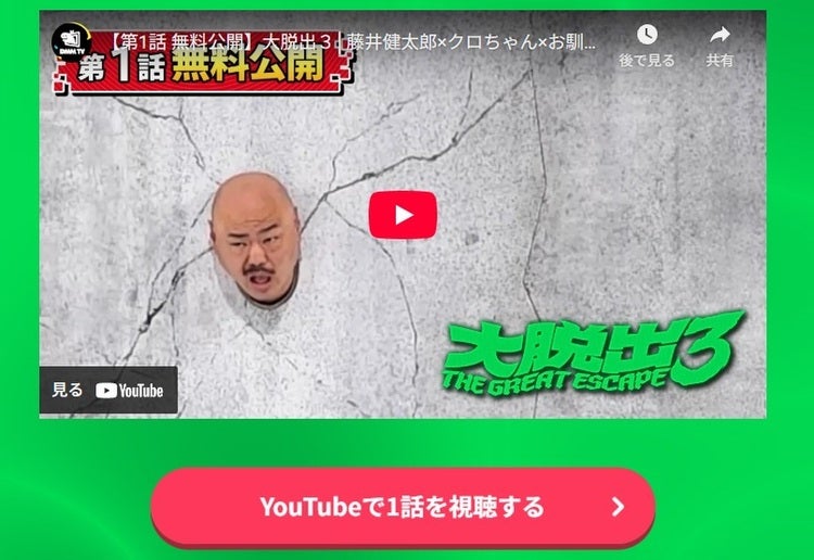 大脱出(シーズン1) | DMM TVで見放題配信中 | 全6話 | 2023年 | YouTubeで1~3話が期間限定無料公開されることもあり |