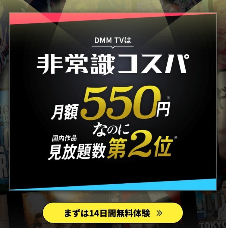 | 特徴 | アニメが特に強い/オリジナル作品も豊富/DMMポイント連携可能 |
