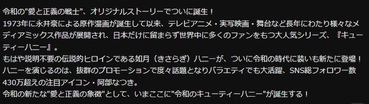 | 如月ハニー/キューティーハニー | 阿部なつき | SNSフォロワー数430万超。令和版ヒロイン。 |