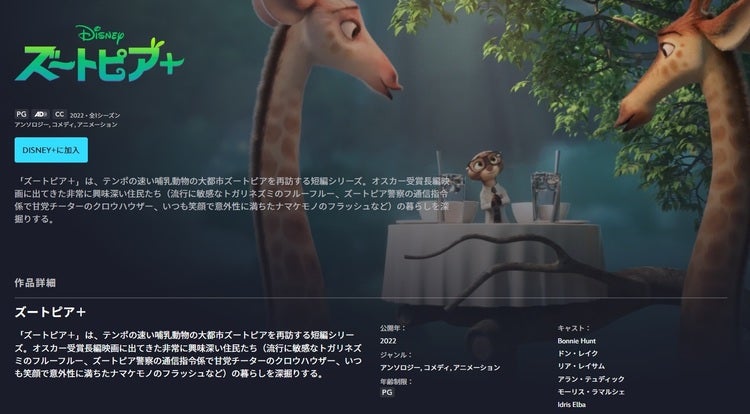 【ディズニープラスおすすめ ②ズートピア(Zootopia)】