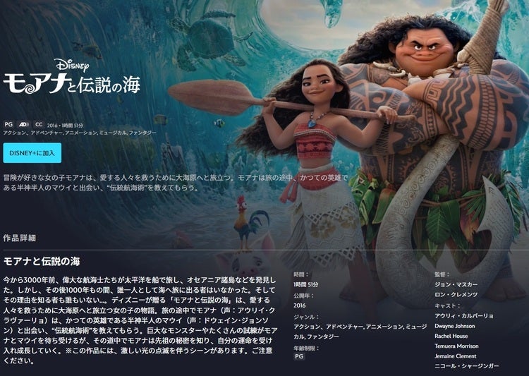 【ディズニープラスおすすめ ③モアナと伝説の海(Moana)】
