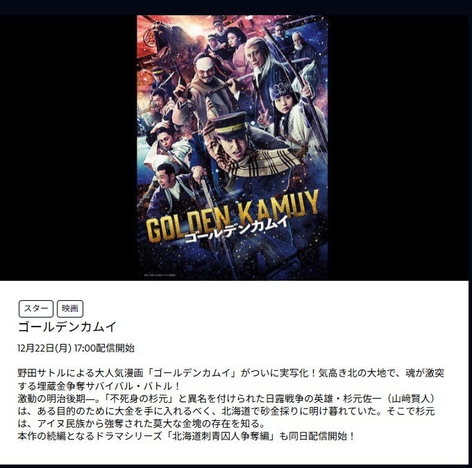 ▶今すぐディズニープラスでゴールデンカムイを見てみる