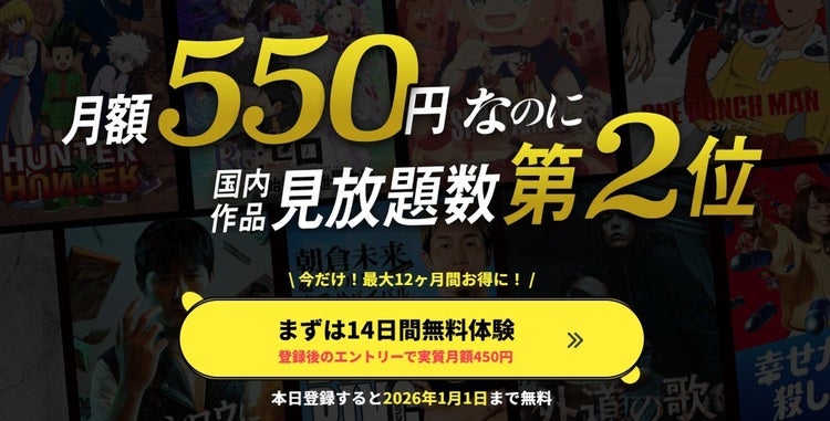 U-NEXTはテレビ特番と一緒に、映画・ドラマ・アニメもまとめて楽しみたい人にとても使い勝手が良いサービスです。無料トライアルを活用すれば、年末年始のコンテンツを追加料金なしで堪能できます。