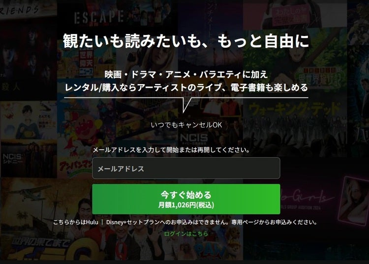 | 【特徴】 | ・見放題作品数が業界トップクラス ・毎月1,200ポイント付与(新作映画・PPV購入等に使える) ・NHKオンデマンドと連携可能で「NHK紅白歌合戦」の見逃しも視聴可能(追加契約) ・雑誌読み放題やマンガ電子書籍にも対応 |