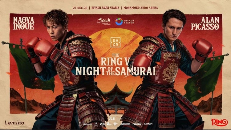 2025年12月27日にサウジアラビア・リヤドで開催されるTHE RING V: NIGHT OF THE SAMURAIをLeminoが国内独占生配信!井上尚弥選手、武居由樹選手、佐々木尽選手など世界戦だけではなく、フェニックスバトルなども楽しめる内容になっています。