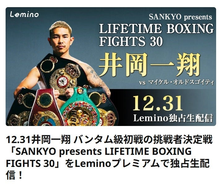 ボクシングファン向けには、Lemino独占配信によるトリプル世界タイトルマッチが大晦日に予定されています。複数階級の世界戦が一夜で行われる豪華な構成で、日本人選手が世界タイトルをかけて挑む注目の大会です。ネット配信を中心とした視聴スタイルで、じっくり試合を楽しみたい方に向いています。