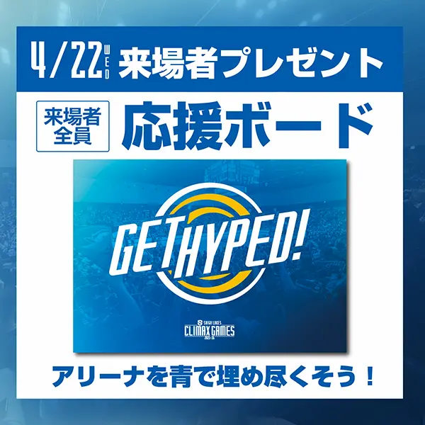 「GET HYPED!」デザイン応援ボードを来場者全員に配布