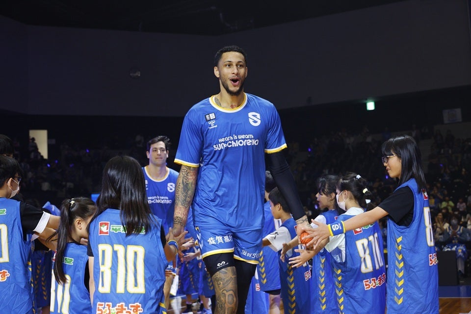 両チームの選手が入場。滋賀レイクスの選手がサイン入りのボールを投げ込みます!ここからは試合まで選手たちがウォームアップで試合に向けて体を動かす様子がご覧いただけます。