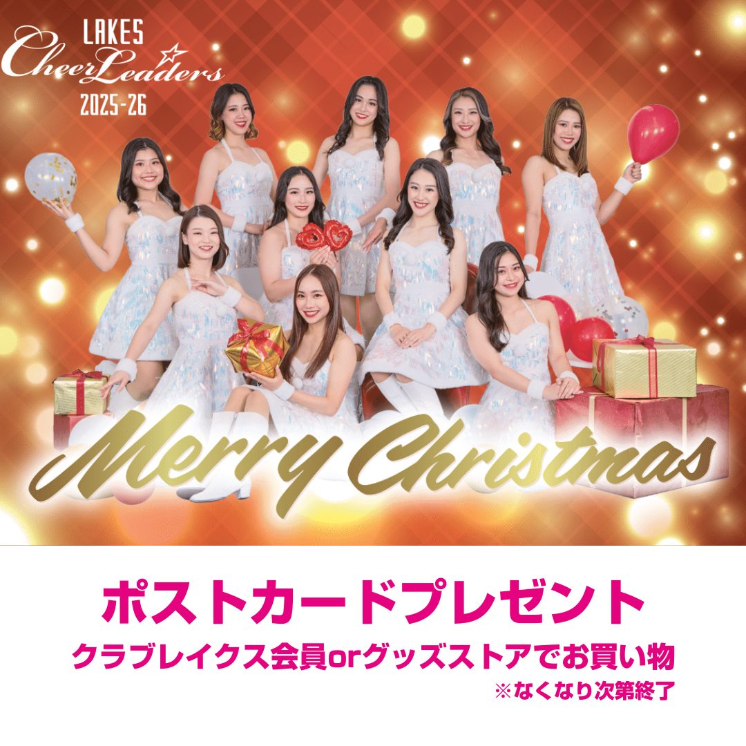 ハーフタイムはレイクスチアリーダーズとチアスクール生がクリスマス特別パフォーマンスで会場を華やかに彩ります。総勢320名で作り上げる迫力満点のパフォーマンスにどうぞご注目ください!