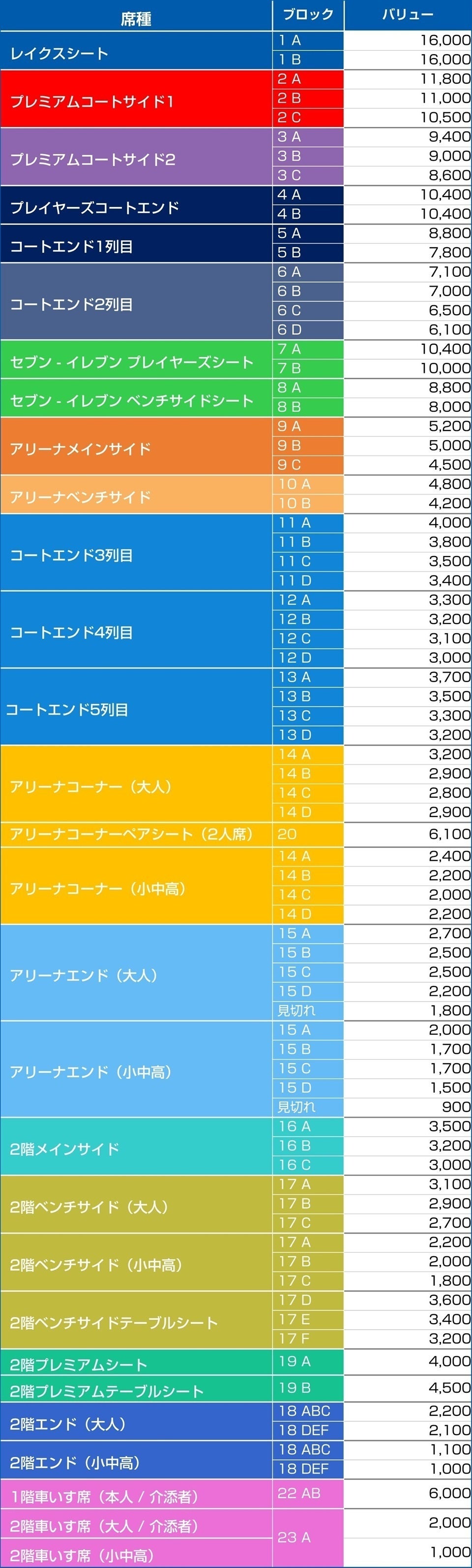 | 販売席種 | 全席種 (セブン-イレブン プレイヤーズシート /セブン-イレブン ベンチサイドシート 以外) |