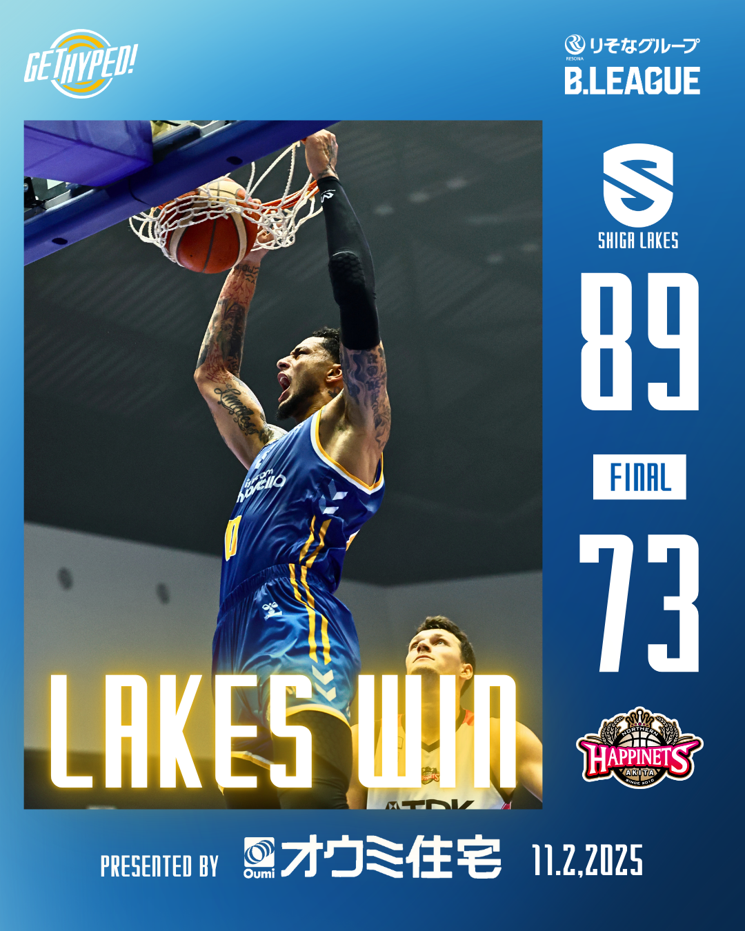 【ゲームレポート 2025/11/2】第7節 vs 秋田ノーザンハピネッツ GAME2(AWAY)