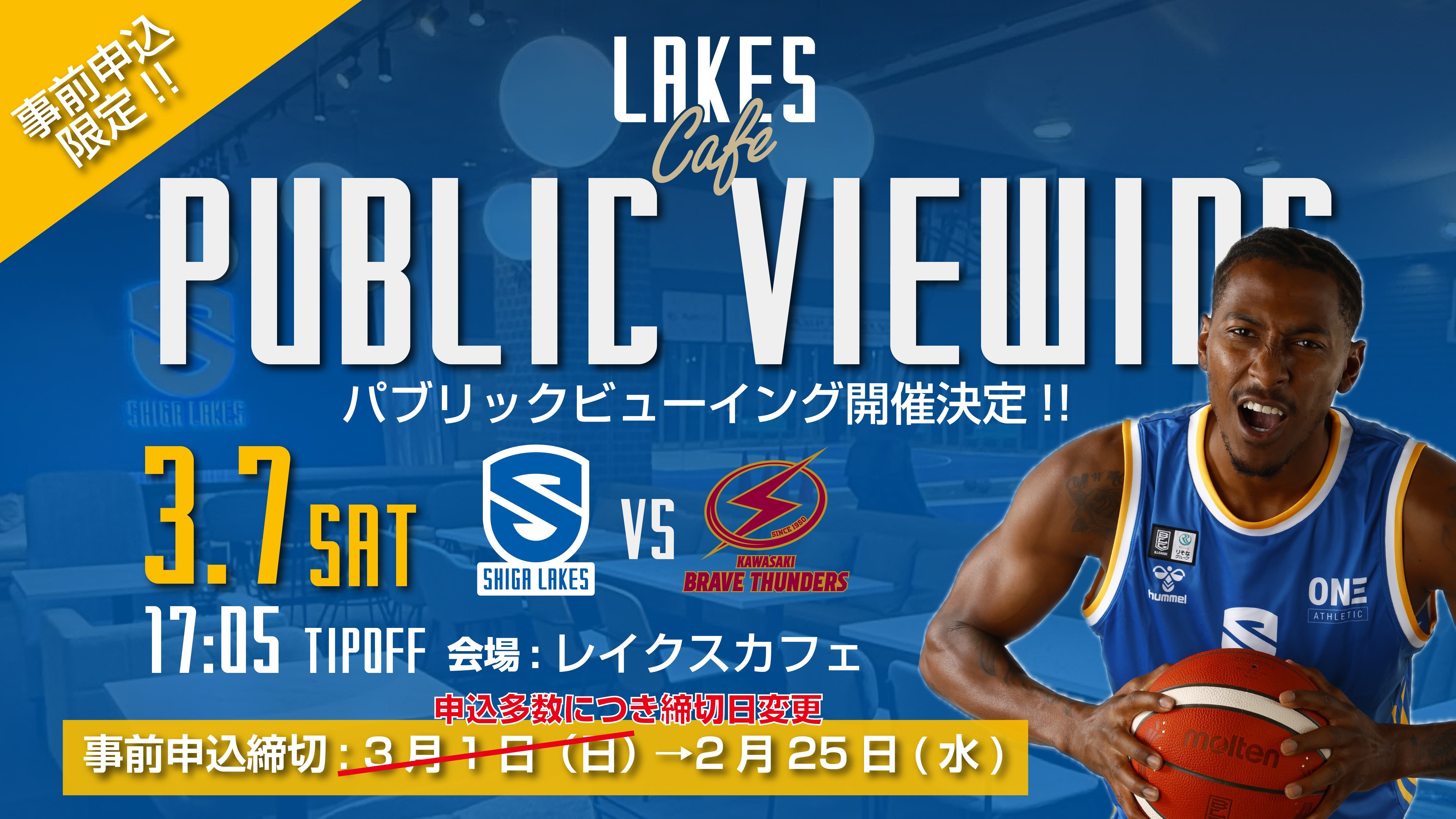 LAKES CAFE オープン記念 3/7 vs川崎 パブリックビューイング開催