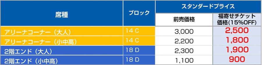 ※選手により選択できる座席が異なります。購入の際に希望選手を指定した上でチケットをお買い求めください。