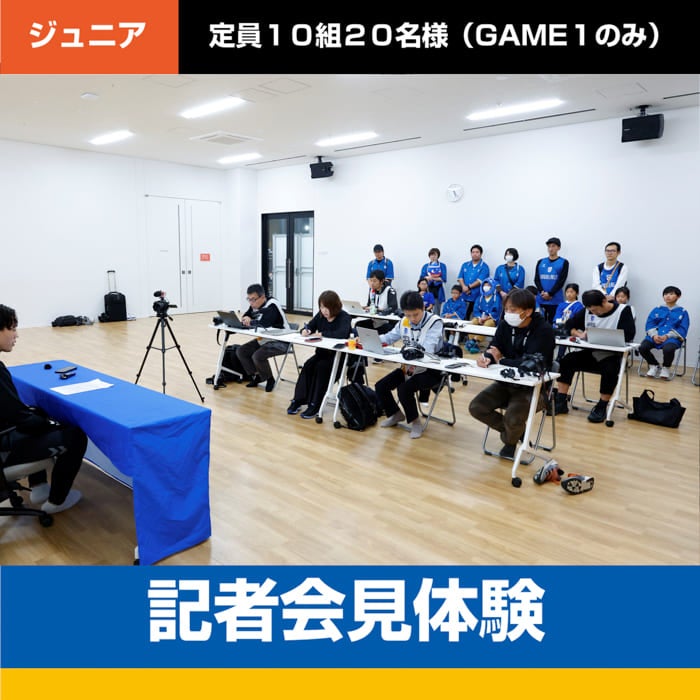 ジュニア会員を対象に記者会見見学・体験を実施いたします。記者会見の見学だけでなく、ご参加の方の中から数名、選手に質問することが出来ます。