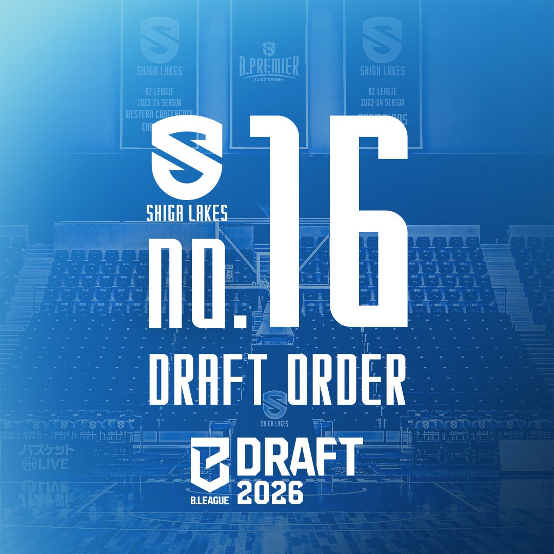 2026年1月29日(木)に初開催される「B.LEAGUE DRAFT 2026」における、指名順抽選「B.LEAGUE DRAFT 2026 LOTTERY(ロッタリー)」が12月22日に行われ、滋賀レイクスは16位指名権(一巡目16番目の指名)を獲得しましたので、お知らせいたします。