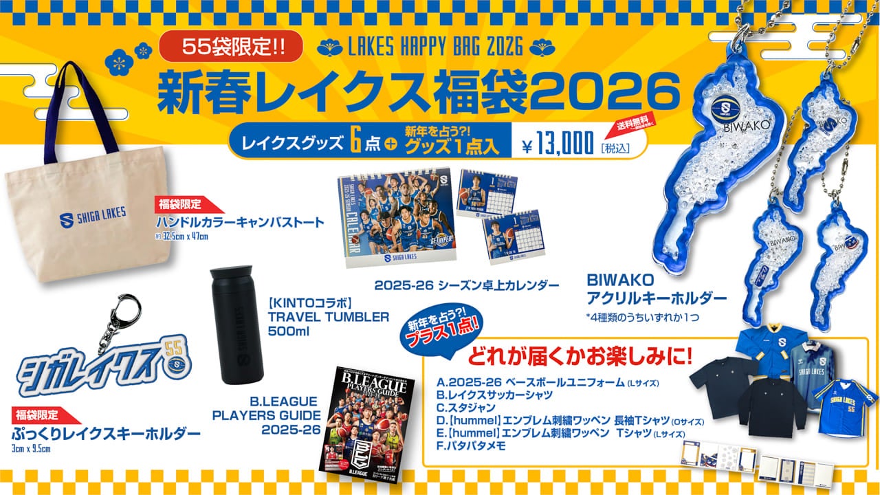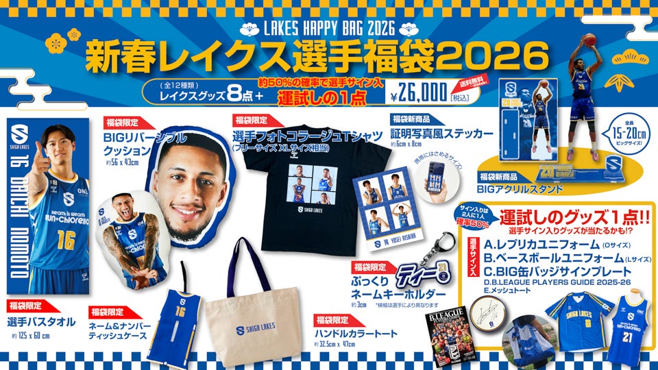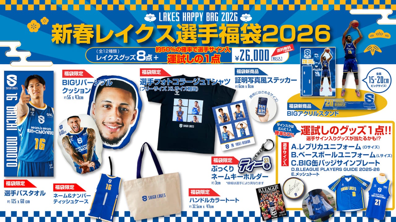 滋賀レイクスでは12月26日(金)12:00より、公式オンラインストアにて「新春レイクス選手福袋2026」と「新春レイクス福袋2026」を販売いたします。