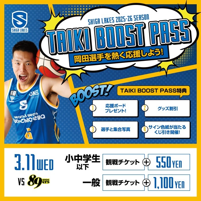 滋賀レイクスでは、3月のホームゲームを対象とした「PLAYERS BOOST PASS」を販売いたします。