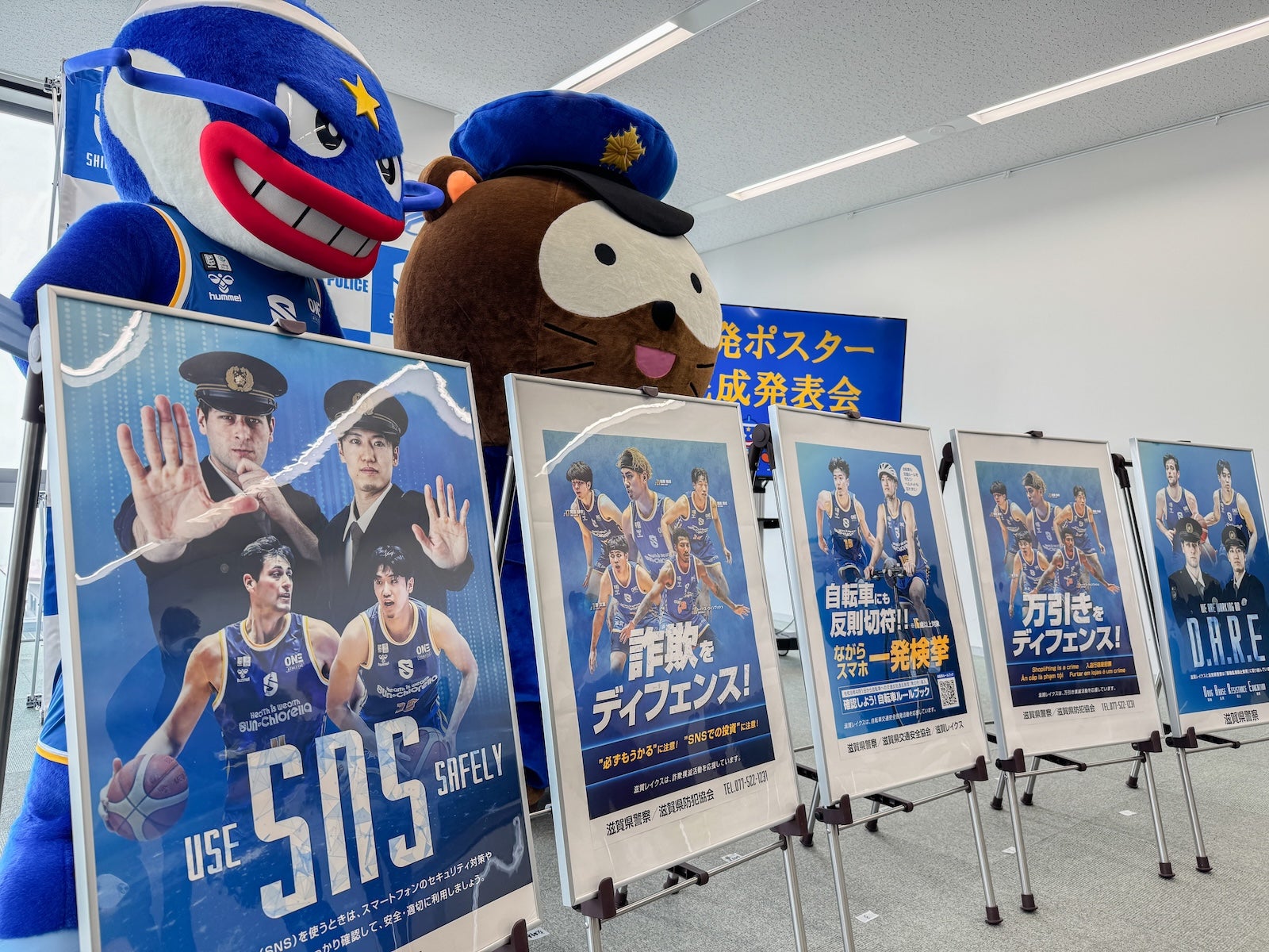 滋賀レイクスでは、滋賀県警察、公益社団法人滋賀県防犯協会、公益財団法人滋賀県交通安全協会と協力し、選手を起用した防犯啓発ポスターを制作しました。2月20日に滋賀県警察本部にてお披露目式を行いました。