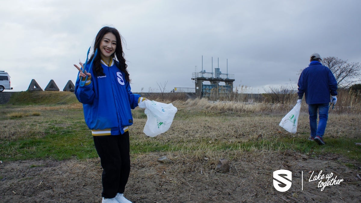 今回は、レイクスチアリーダーズのYUZUHO・ENAが参加者の皆様で楽しく会話をしながら、湖岸周辺の清掃活動を行いました。清掃活動では琵琶湖に綺麗な虹が掛かる風景を楽しみながら参加者の皆様と湖岸のゴミなどを回収し、7袋約140ℓ分のゴミを回収しました。