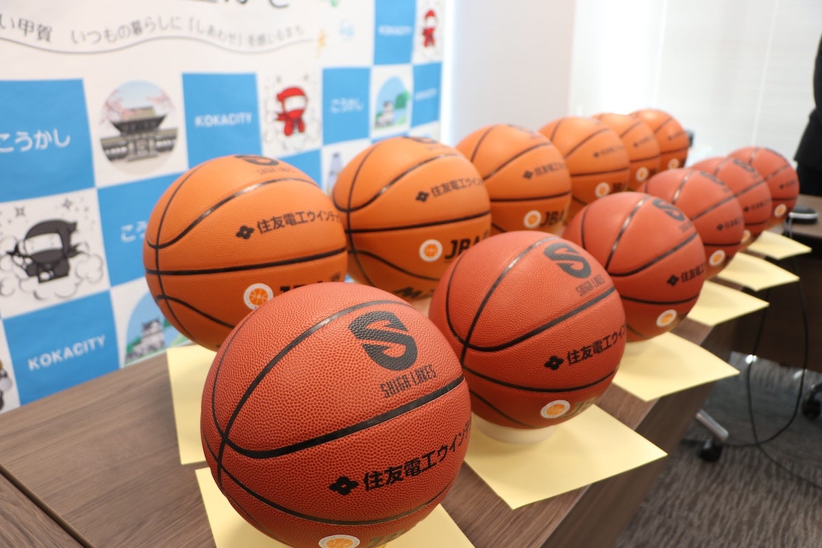 滋賀レイクスは、「レイクス・バスケットボール寄贈プロジェクト」の一環で、住友電工ウィンテック株式会社と住友電工プリントサーキット株式会社の協賛により、甲賀市教育委員会にバスケットボール合計71球を寄贈いたしました。今後、甲賀市内の小学校・中学校へ届けられます。